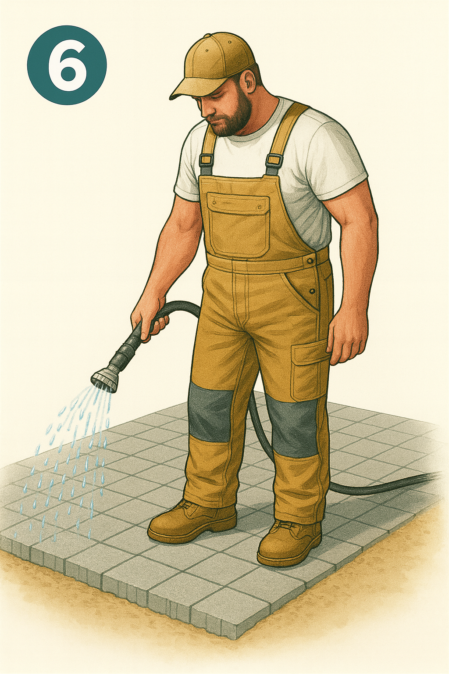 TERRABOND wird einfach anstatt Sand trocken in die Fugen eingekehrt und verdichtet. Mit Wasser aktiviert bindet das Polymer-Fugenmaterial zu einer festen widerstandsfähigen Fuge ab.