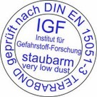 Jetzt ist es offiziell: TERRABOND wurde bei der Prüfung am Institut für Gefahrstoff-Forschung der Berufsgenossenschaft Rohstoffe und chemische Industrie an der Ruhr-Universtität Bochum nach DIN EN 15051-3 als staubarm eingestuft.