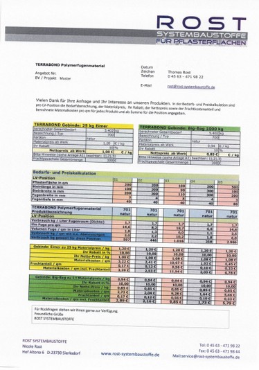 - TERRABOND wird einbaufertig geliefert und trocken eingekehrt, die Steinoberfläche kann rückstandsfrei gereinigt werden - es entsteht keine optische Beeinträchtigung oder Verfärbung am Pflasterbelag.